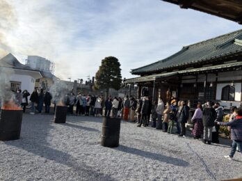 沢山のお参り 2026年1月6日 令和7年を締めくくる除夜の鐘、暖かく穏やかな天候も手伝って 今回も大勢のお参りの方が見えました。 檀信徒さんとの久々の再会に、つい話も弾みます。 新年も良い年になります様、心を込めて第一打を打たせて頂きました。